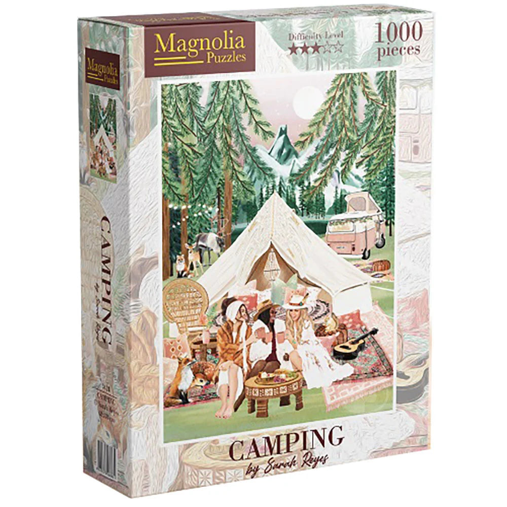 Embrace the great outdoors with 'Camping' - an adventurous Magnolia puzzle that captures the joy, freedom, and natural beauty of camping under the stars. This premium quality puzzle features stunning illustrations of camping scenes, from cozy tents to crackling campfires, creating a peaceful and inspiring outdoor scene.