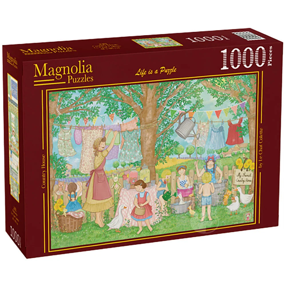 Escape to the peaceful countryside with 'Country House' - a charming Magnolia puzzle that captures the rustic beauty and tranquil atmosphere of a traditional country home. This premium quality puzzle features stunning illustrations of a cozy country house surrounded by nature, creating a serene and nostalgic scene.