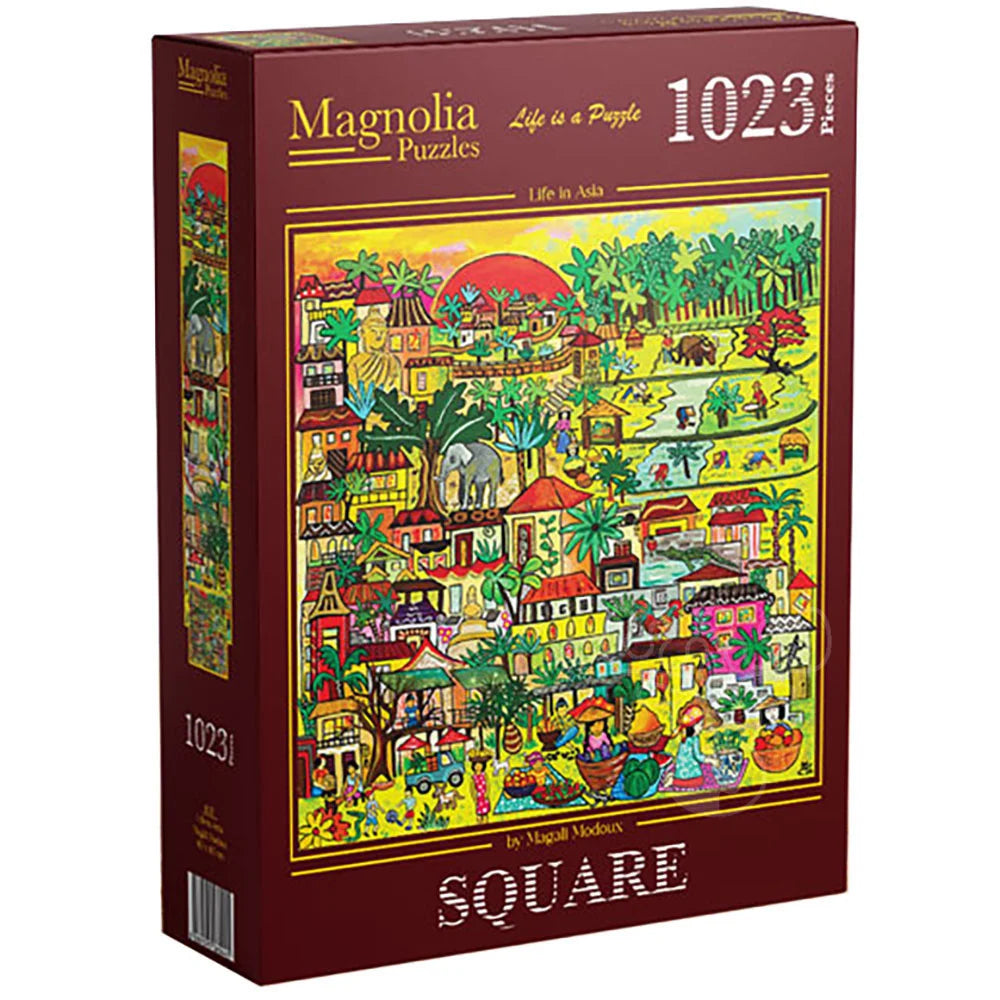 Journey through the vibrant cultures and landscapes of 'Life in Asia' - a captivating Magnolia puzzle that celebrates the rich diversity, traditions, and beauty of Asian life. This premium quality puzzle features stunning illustrations that showcase the colorful tapestry of Asian culture.