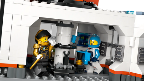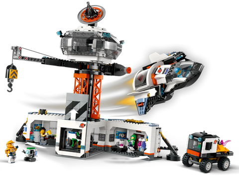 This set features a large multi-stage rocket with opening compartments, a complete space base with mission control center, working launchpad with launch tower, multiple astronaut and ground crew minifigures, space rovers, and exploration equipment. The realistic design and interactive features make this perfect for recreating exciting rocket launches, space missions, and mission control operations.