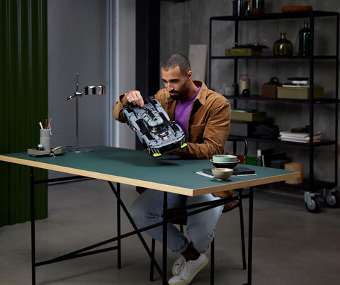 Marvel at the details as you assemble this race car. Explore the hybrid system with a V6 piston engine connecting to the rear wheels, plus a model version of the electric motor and its battery. Check out the specially designed suspension and steering — operable via the steering wheel or gear wheel on top. Glow-in-the-dark light elements capture the atmosphere of a real 24-hour race.